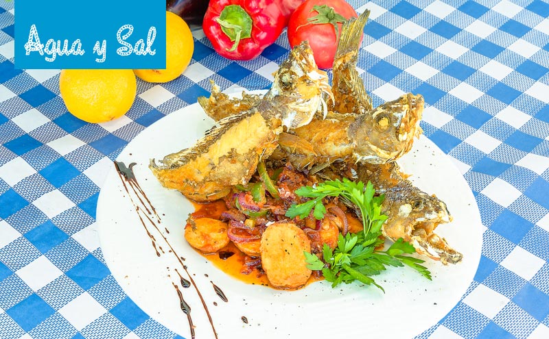 A wide range of kebabs with: shrimps, beef, chicken and pork. The restaurant speciality is squid sandwich. The menu on the board changes daily, the staff uses only fresh products.Agua y Sal